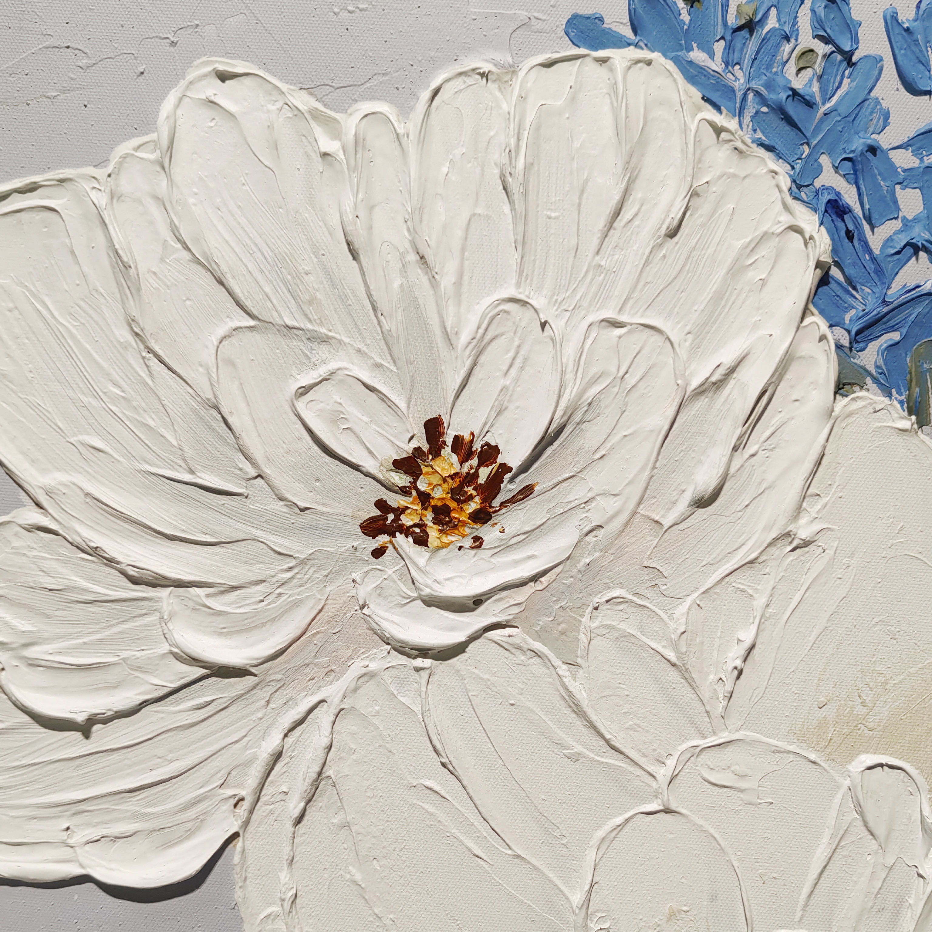 رسومات يدوية حديثة من النسيج اللوحة الزيتية للزهرة البيضاء لغرفة المعيشة ديكور المنزل 100% مصنوعة يدويا وبدون إطار 3
