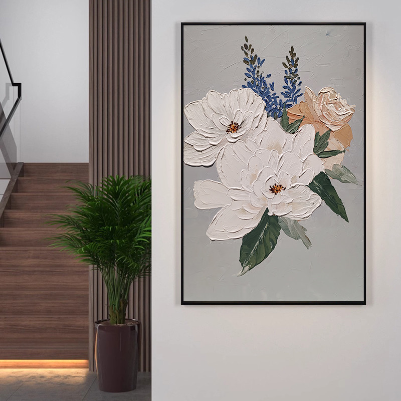 رسومات يدوية حديثة من النسيج اللوحة الزيتية للزهرة البيضاء لغرفة المعيشة ديكور المنزل 100% مصنوعة يدويا وبدون إطار 6