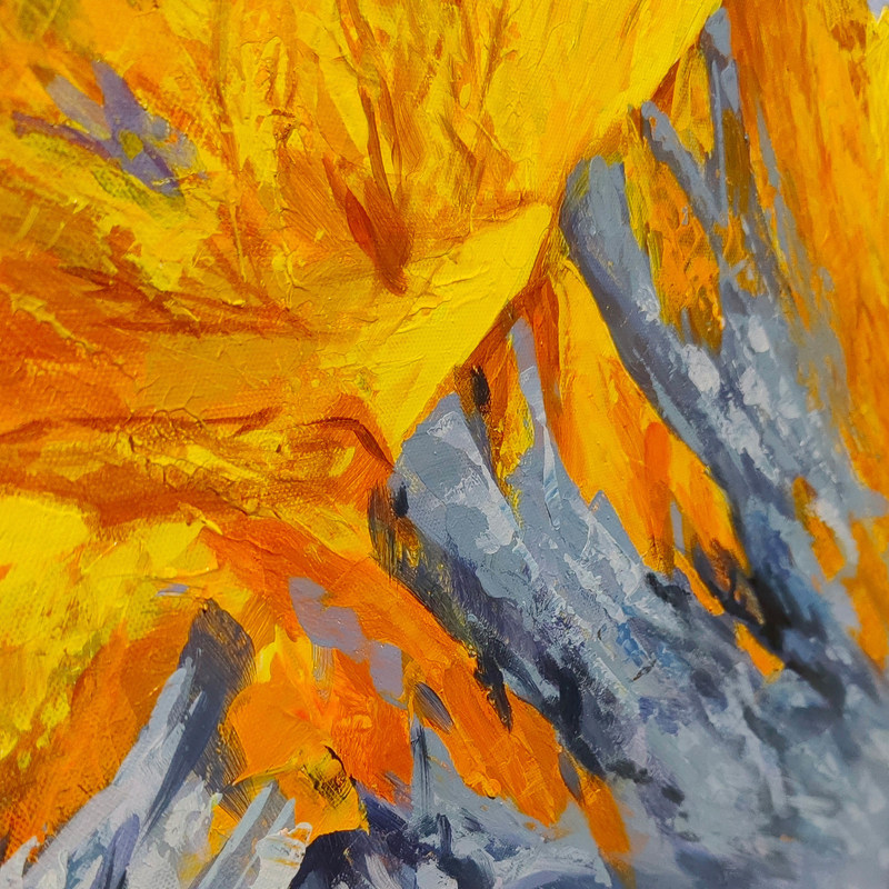 رسم يدوي مخصص للجبل الذهبي الحديث المجرّد النسيج السميك القماش الرسم الإغاثي ثلاثي الأبعاد مع أساليب طباعة مختلفة 3
