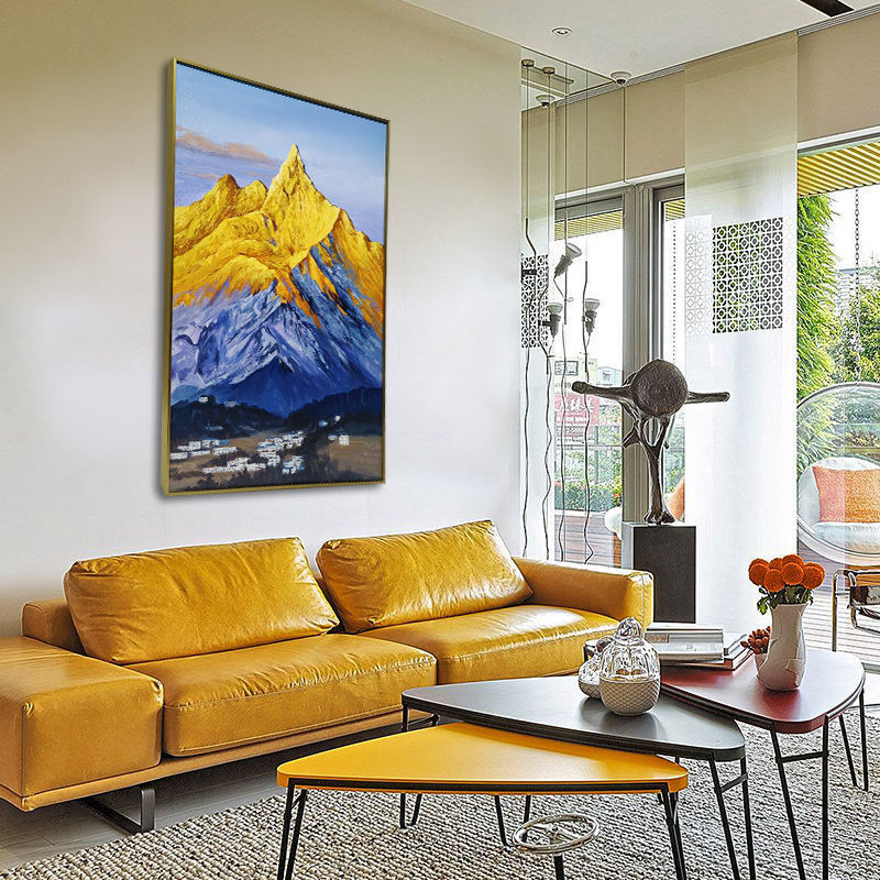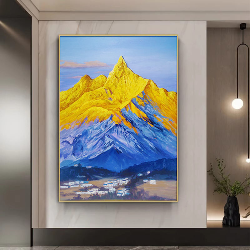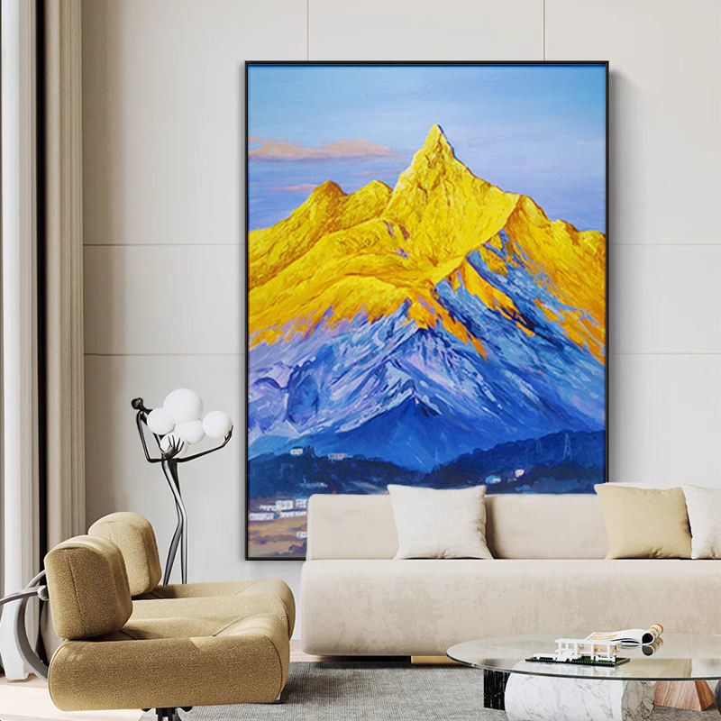 رسم يدوي مخصص للجبل الذهبي الحديث المجرّد النسيج السميك القماش الرسم الإغاثي ثلاثي الأبعاد مع أساليب طباعة مختلفة